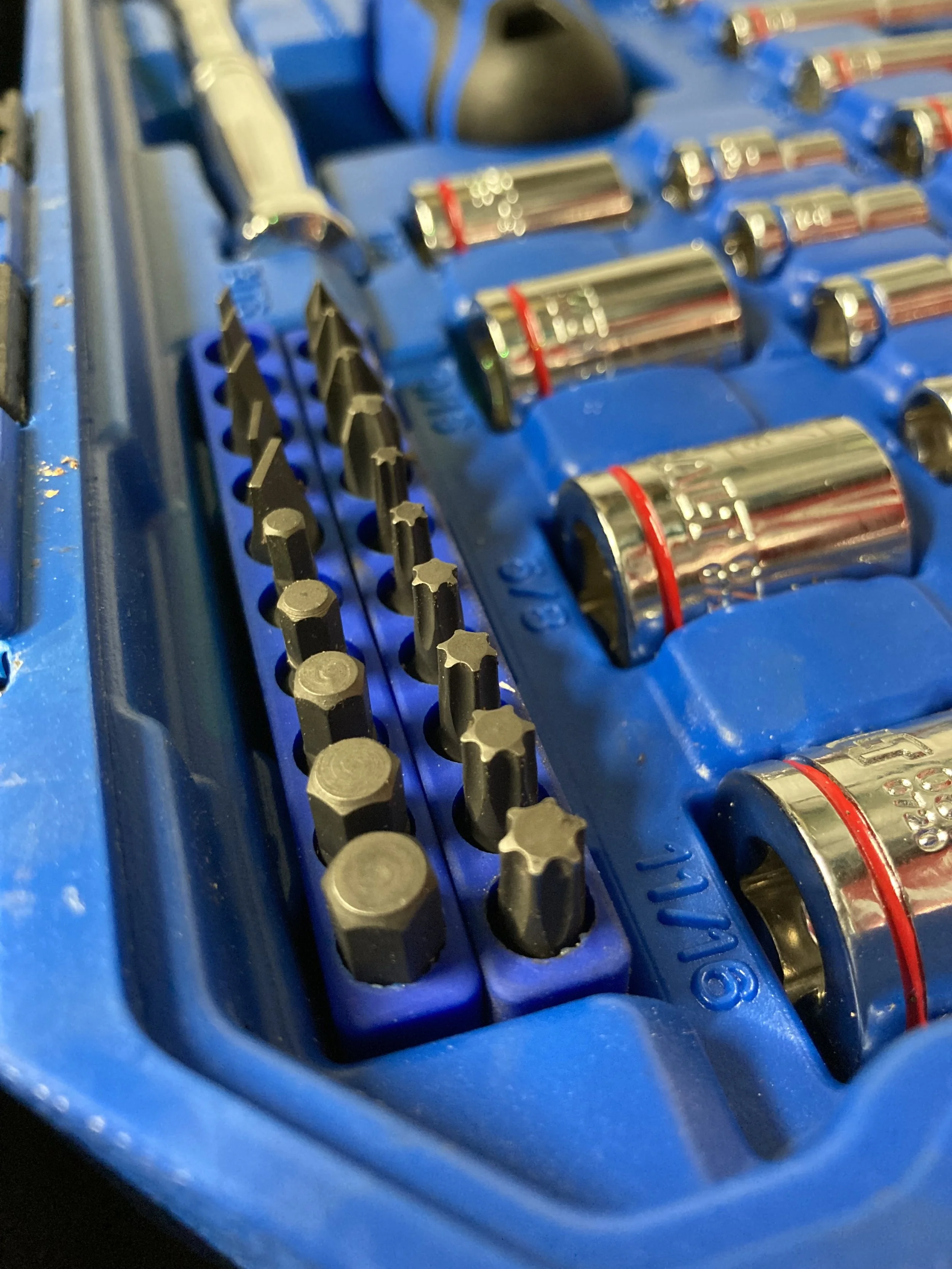 This is set is well laid out and makes it easy to find what you need quickly. I love the color coded sockets for metric and SAE, which is very similar to the Harbor Freight Quin sockets.